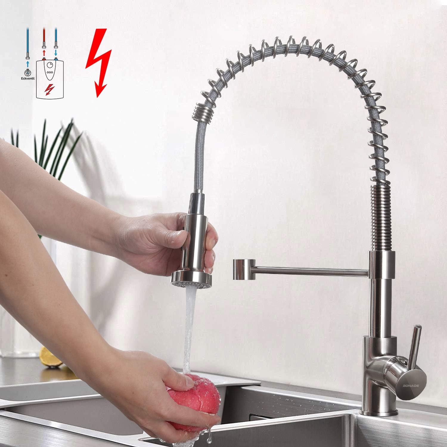 - Grifo en espiral con alcachofa – con el muelle en espiral flexible y extensible, el grifo giratorio de 360° alcanza fácilmente cualquier área de fregaderos y ollas. 2 tipos de chorro mediante un botón. Así podrás disfrutar de la máxima comodidad con la ducha de muelle en espiral.