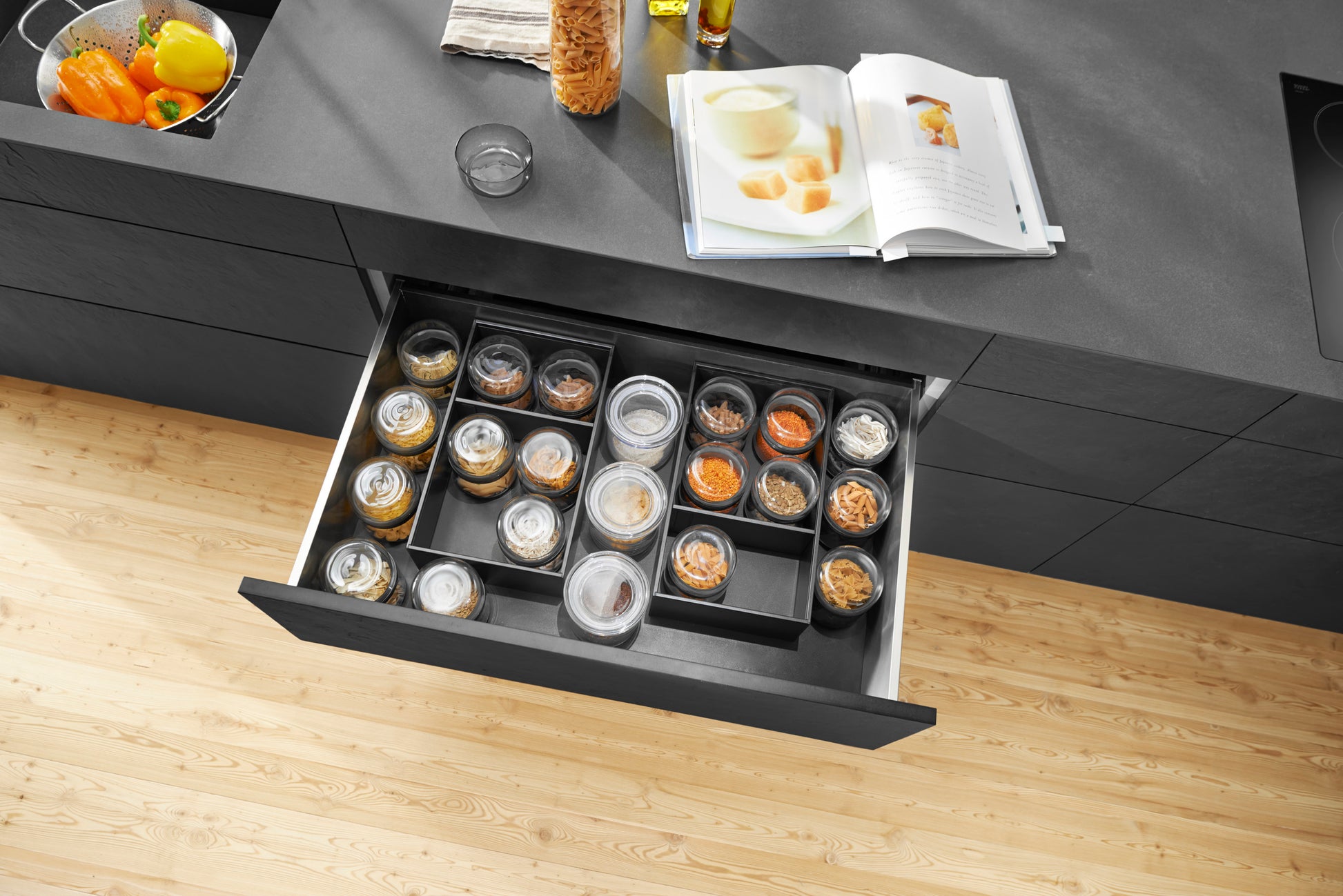 Integración perfecta: combina a la perfección con los interiores de cajón LEGRABOX y MERIVOBOX de Blum, creando un conjunto armonioso.
