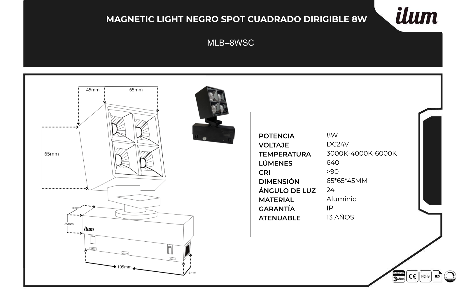 - Capacidad de variar su temperatura entre fría, neutra o cálida (3,000k-4,000k-6,000k)